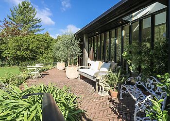 - Wraparound gardens with patio furniture