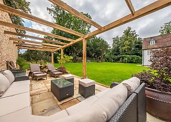 - Wraparound gardens with patio furniture